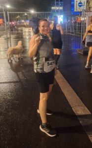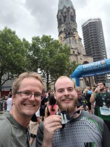 Trotz getrennter Startzeiten unter den 5km- und 10km-Läufern, Dauerregen und eintretender Dunkelheit haben wir alle glücklich und zufrieden unsere Medaille entgegennehmen können. Bis auf die übliche Banane am Ziel wurde bei diesem Event an alles gedacht. Sogar an die personifizierten Startnummern. Nächstes Jahr, wenn der Ku’damm wieder zur Rennstrecke wird, sind wir sicher auch am Start.
