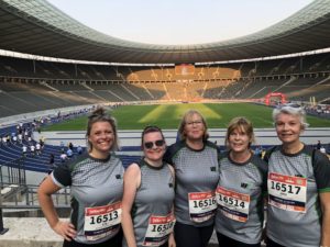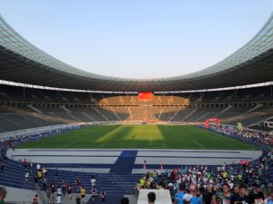 Es ging auf einer Strecke von ca. 5,4 km rund um den Olympiapark und als abschließendes Highlight der Zieleinlauf auf der “blauen Bahn“ im Berliner Olympiastadion. Wow mit Gänsehaut!!!!