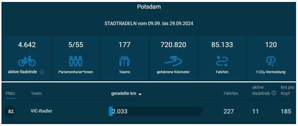 Zum 4. Mal hat VIC in Potsdam am alljährlichen Stadtradeln teilgenommen.